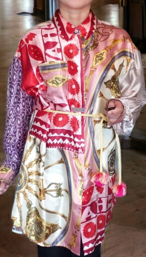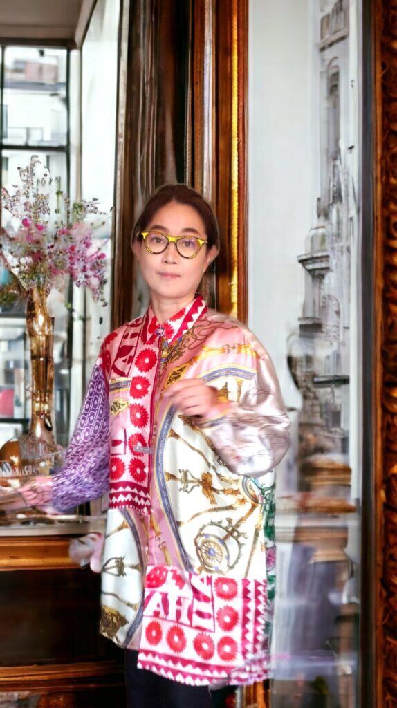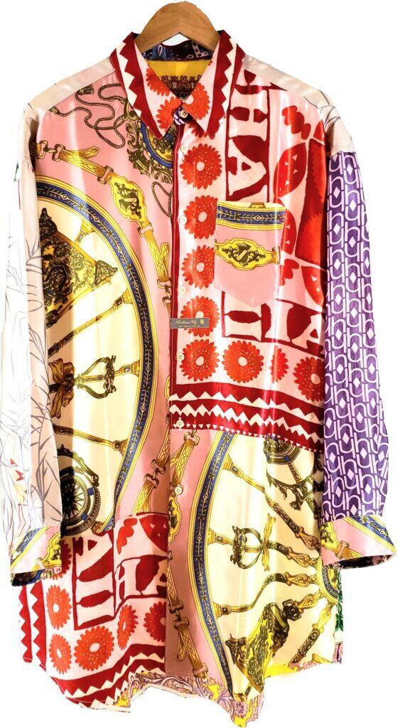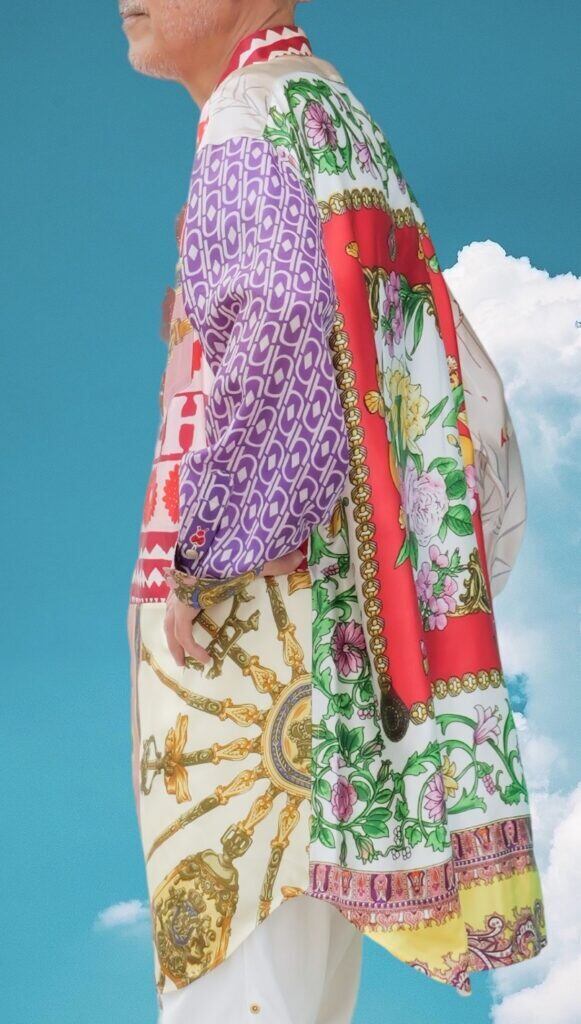 ヴィンテージスカーフを組み合わせてアートとして生まれ変わった、世界に一つだけの「身に纏うアート/クロージングアート」