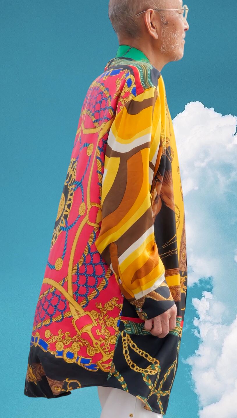 ヴィンテージスカーフを組み合わせてアートとして生まれ変わった、世界に一つだけの「身に纏うアート/クロージングアート」