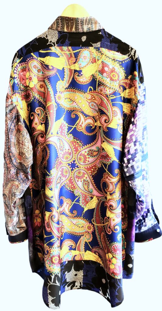 ヴィンテージスカーフを組み合わせてアートとして生まれ変わった、世界に一つだけの「身に纏うアート/クロージングアート」
