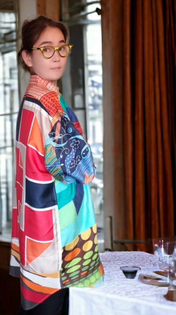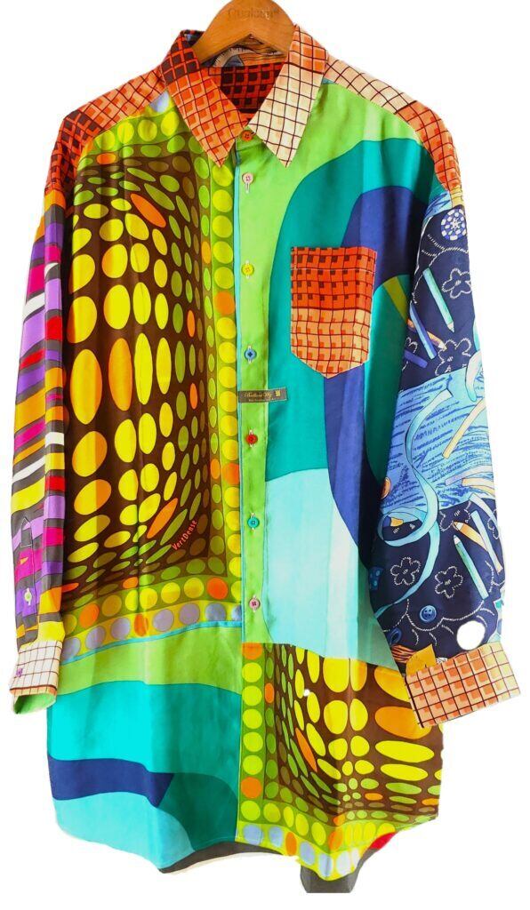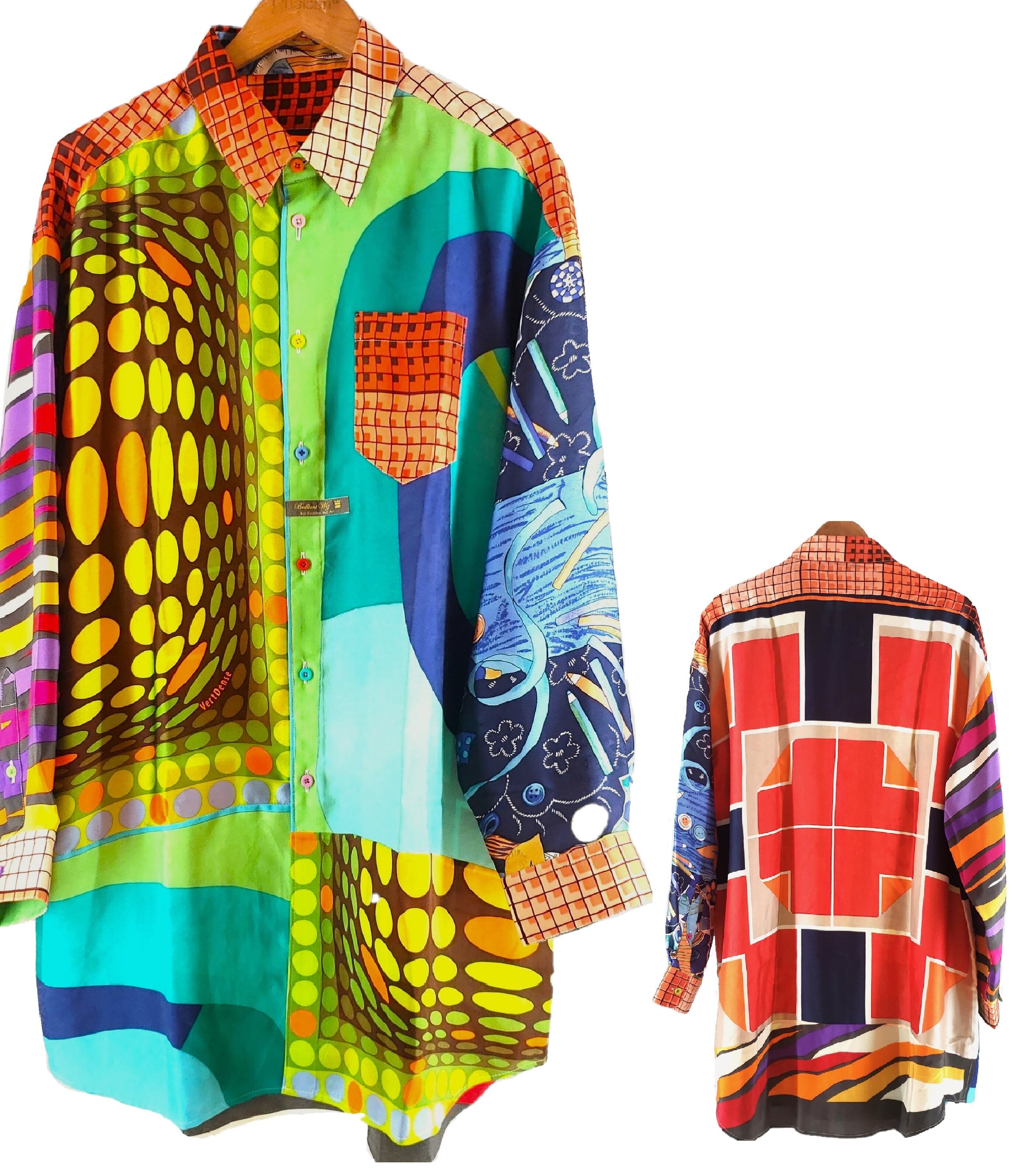 ヴィンテージスカーフを組み合わせてアートとして生まれ変わった、世界に一つだけの「身に纏うアート/クロージングアート」