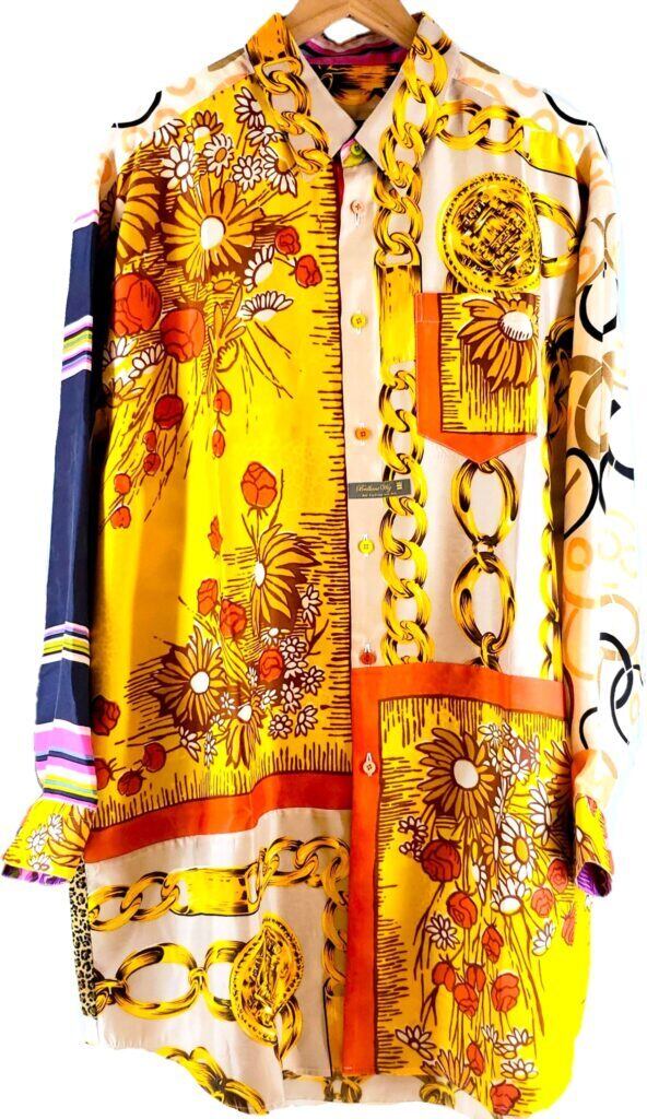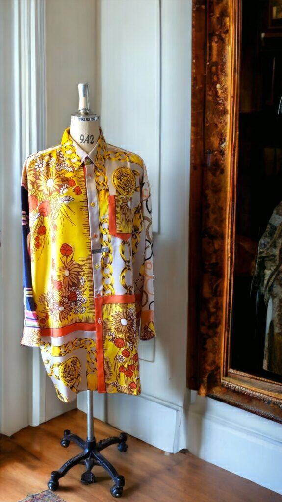 ヴィンテージスカーフを組み合わせてアートとして生まれ変わった、世界に一つだけの「身に纏うアート/クロージングアート」
