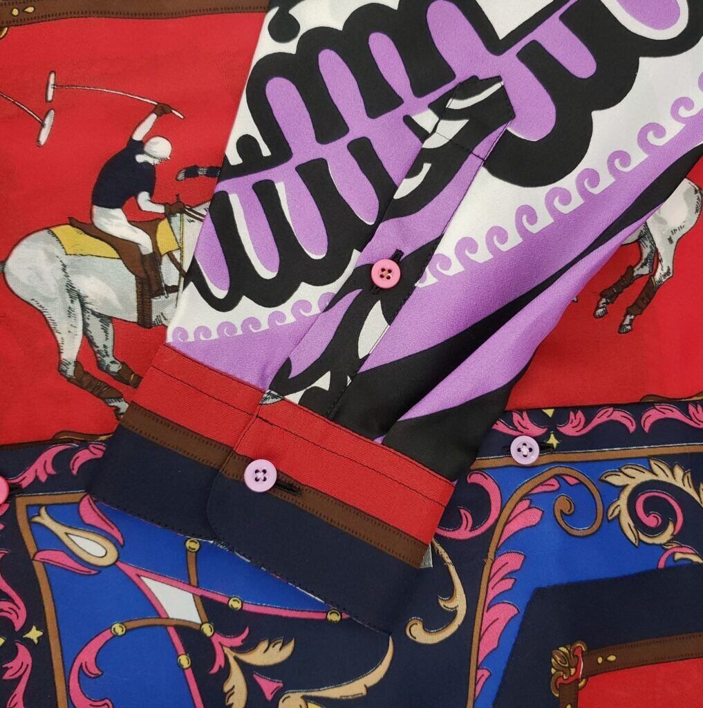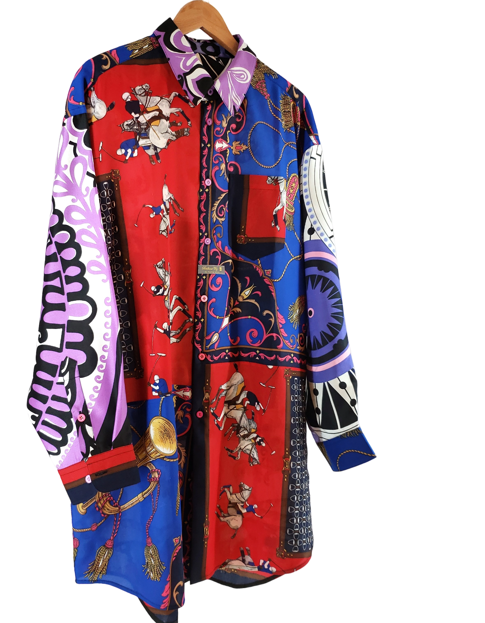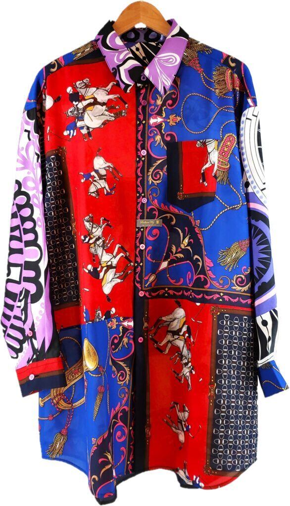 ビンテージのポロ競技柄のスカーフをアップサイクルしたアート作品。
