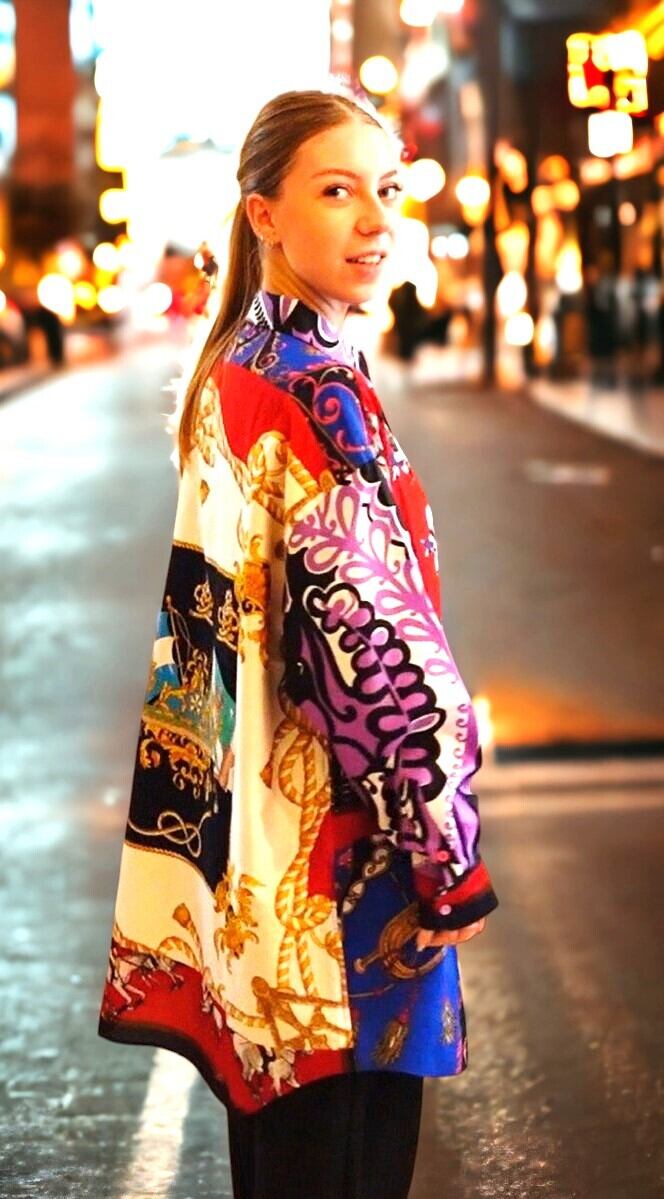 ヴィンテージスカーフを組み合わせてアートとして生まれ変わった、世界に一つだけの「身に纏うアート/クロージングアート」