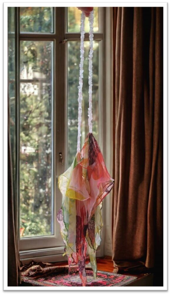ヴィンテージスカーフを組み合わせてアートとして生まれ変わった、世界に一つだけの「身に纏うアート/クロージングアート」