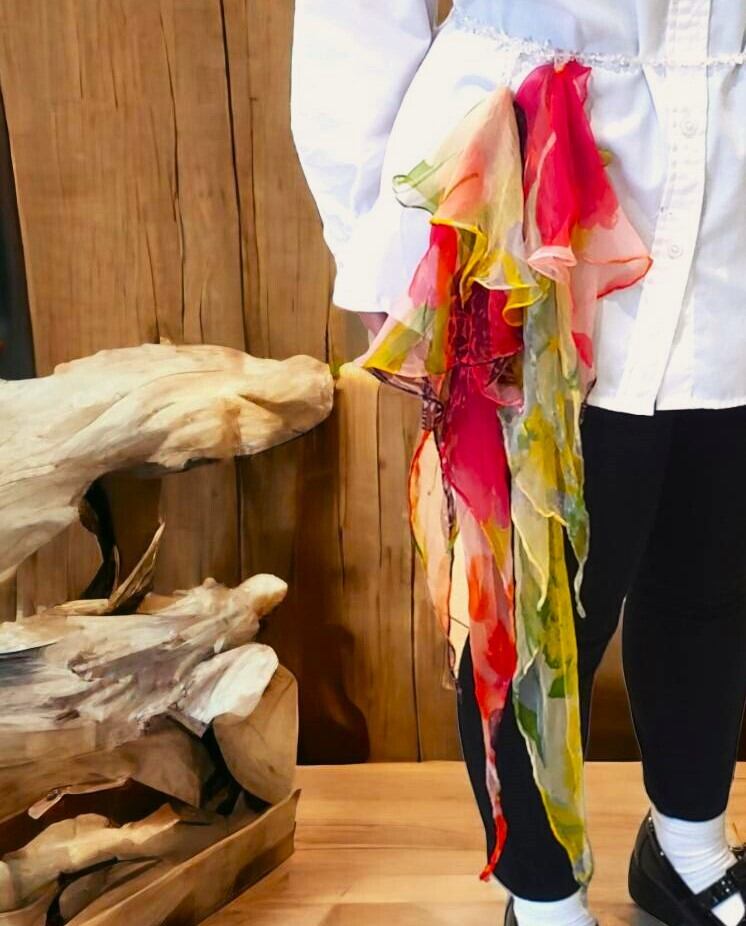 ヴィンテージスカーフを組み合わせてアートとして生まれ変わった、世界に一つだけの「身に纏うアート/クロージングアート」